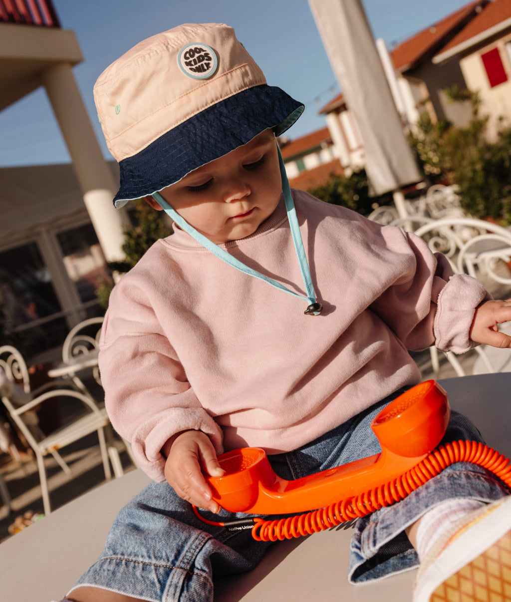 Découvrez le Bob pour enfants et bébés, Mini Soap, dès 3 mois. Des couleurs douces et premium, faciles à porter au quotidien. Un bob bicolore iconique, confortable et éco-responsable, y a de quoi faire un beau cadeau et bien équiper les enfants !