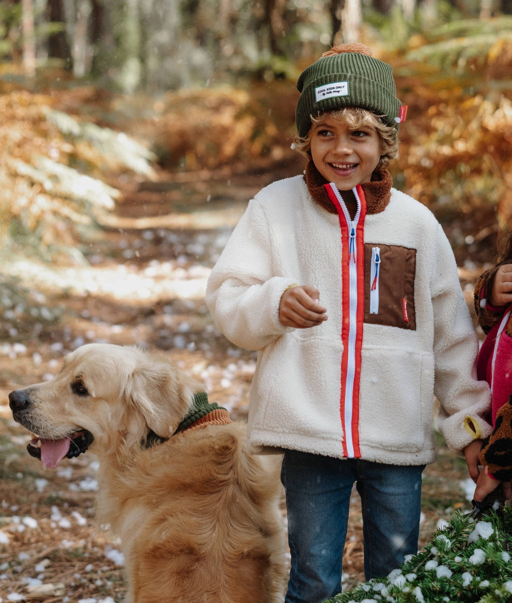 Die Mütze Color Block Forest für Kinder und Babys ist ein Modell Von Geburt an, für die ganze Familie – als Eltern-Kinder-Duo. Bunte Kopfbedeckung, Mütze mit Bommel, Mütze mit Fleecefutter, perfekt für kalte Tage. Sie passt perfekt zu unseren Handschuhen, Fäustlingen und Schlauchschals für Kinder.