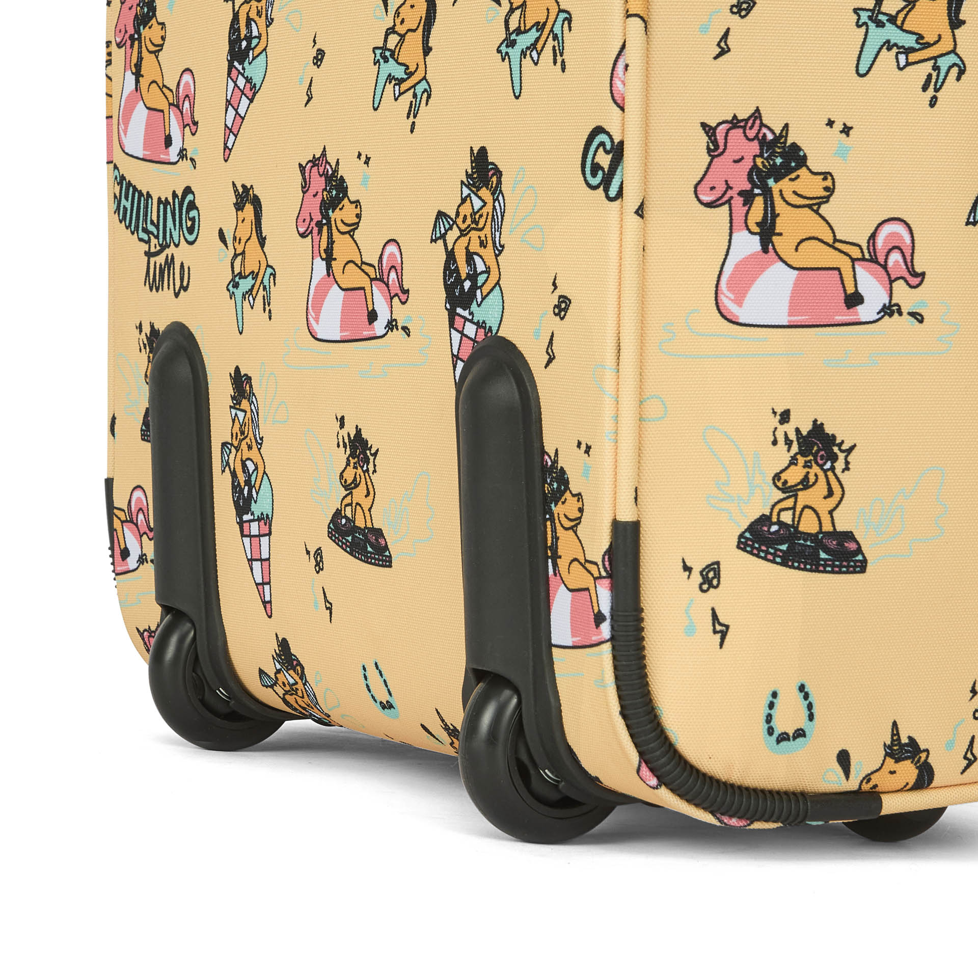 Exclu Web – Craquez pour la Valise pour enfants, Unicorn. Format cabine, modèle souple, avec roulettes et zipper pour cadenas. Qualité premium, facile à manier, canon pour les courts comme longs séjours. À associer à la trousse de toilette du même Nom ☀️
